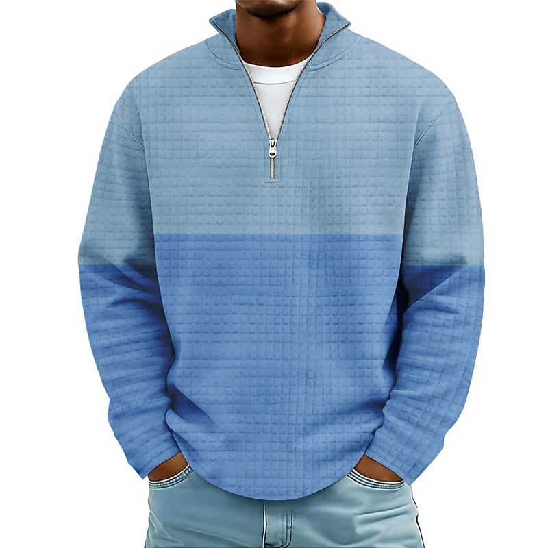 Men's Color Block Striped Sweatshirt Fashion Daily Classic Casual Stand Collar Quarter Zip Home Outdoor Office Work Blue Light Purple Brown Green Gray Zip Up Fall Winter Designer S M L XL XXL XXXL