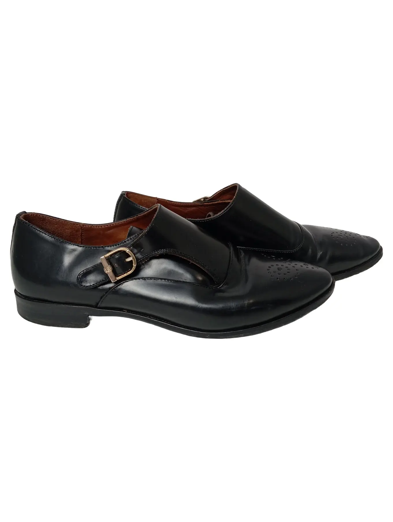 MASSIMO DUTTI Damen Slipper Schwarz Leder Schnalle EU 36