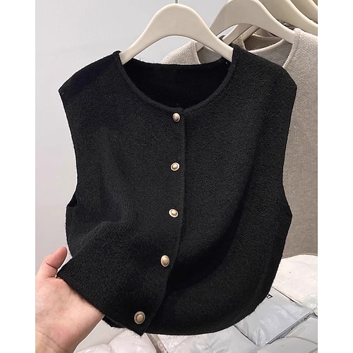 Per donna Felpa Gilet Streetwear Casual Tinta unica Girocollo Bottoni Lavorato a maglia Senza Maniche Top Regolari Maglia Quotidiano Ferie Weekend Nero Albicocca Autunno Inverno