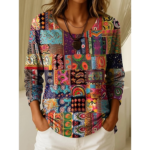Per donna Maglietta Grafico Geometrico Piante Vintage Elegante Casual Manica Lunga Girocollo Top Regolari Quotidiano Weekend Stampato Blu Nero Vino Viola Primavera Autunno Inverno