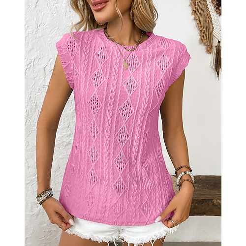 Per donna Maglietta Tinta unica Casual Senza Maniche Girocollo Top Regolari Quotidiano Uscire Weekend Traforato Nero Bianco Verde chiaro Rosa Viola Estate Primavera