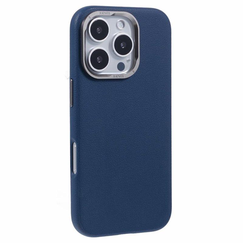 X-LEVEL iPhone 16 Pro Fodral KonstLäder Hård PC Bak - Blå