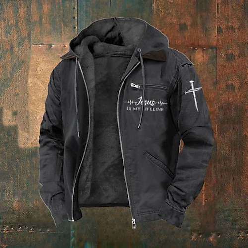 Per uomo Felpa con cappuccio a zip intera Giacca in Pile Felpa con cappuccio in pile Nero Verde militare Blu marino Marrone Grigio scuro Con Cappuccio Lettera Croce Cerniera Tasca Casuale Quotidiano