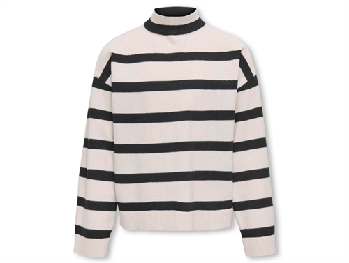 Kids Only Birch/black Stribet Loose Højhalset Strikbluse - Str. 9-10y 134/140cm