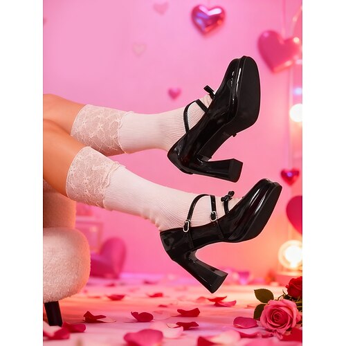 Scarpe con tacco alto da donna in raso rosso con plateau, décolleté con tacco a blocco per le feste di Natale e cinturino alla caviglia per le celebrazioni delle feste abiti da festa