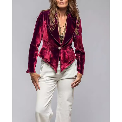 Per donna Blazer Blazer di velluto Confortevole Tasca Moda Semplice Feste Festa / Sera Casuale Corto Regolare Collo ripiegato Vestibilità regolare Manica Lunga Capispalla blu navy Nero Vino Primavera