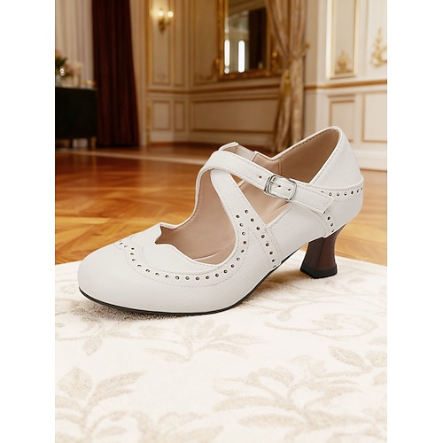 scarpe mary jane con fibbia e brogue in similpelle marrone vintage anni '50 da donna: eleganti décolleté per occasioni formali, ufficio e abbigliamento da giorno e da sera