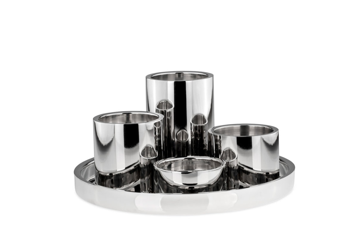 Stumpenkerzen-Halter-Garnitur glatt poliert (5teilig mit Tablett)