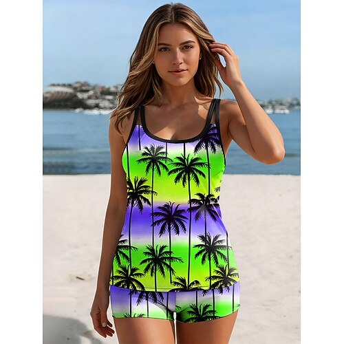 Per donna Costume da bagno Tankini 2 pezzi Tropicale Boyleg Asciugatura Rapida Elastico Senza Maniche Costume da Bagno Costume da bagno Surf Spiaggia Nuoto Estate