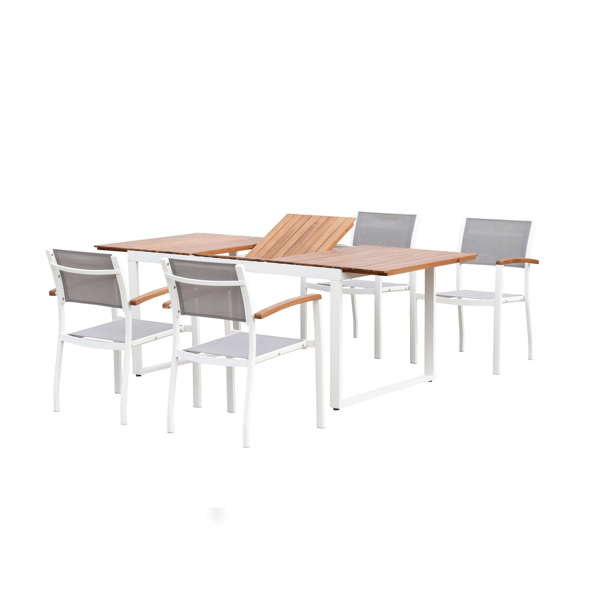 Merxx Naxos Set 5tlg., 4 Stapelsessel, 1 Tisch 150(200) x 90 cm, Aluminium