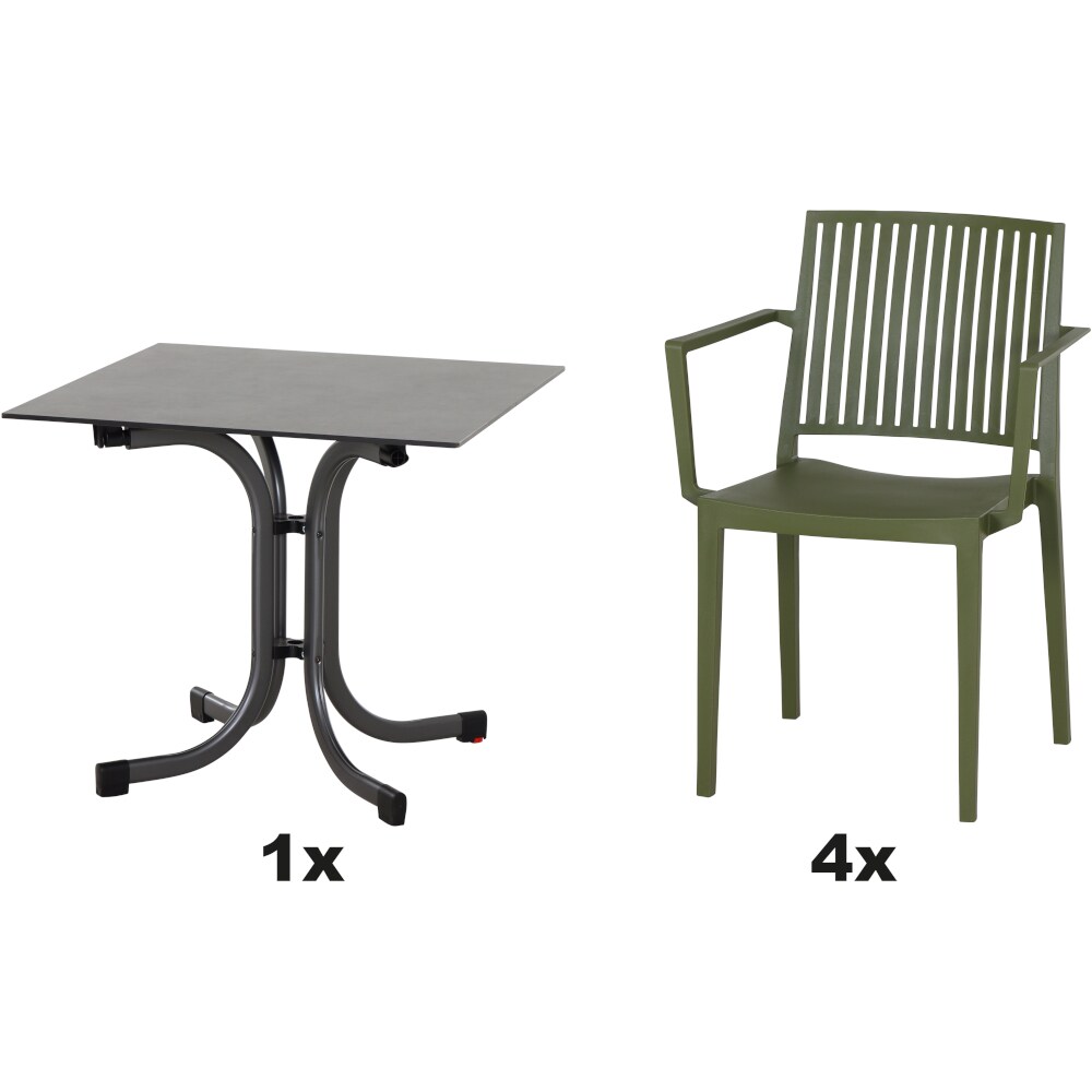 SIENA GARDEN Urban Lights Set 5teilig Lane Sessel gastrotauglich olive mit Tisch Sola 80x80