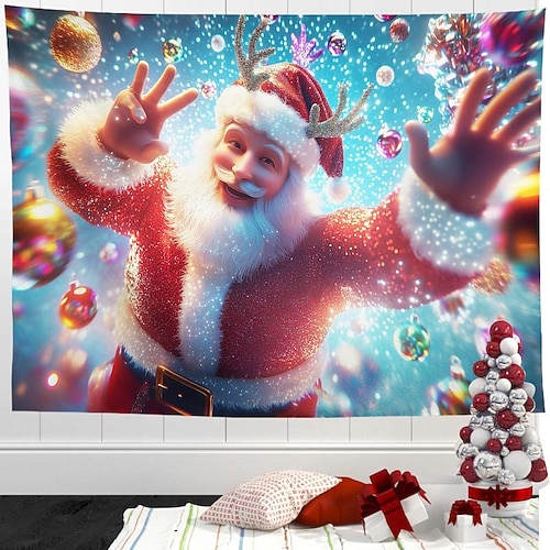arazzo natalizio – arazzo da parete festivo, arazzo decorativo con Babbo Natale, fiocco di neve, albero di Natale, paese delle meraviglie invernale, per la decorazione della casa, della camera da