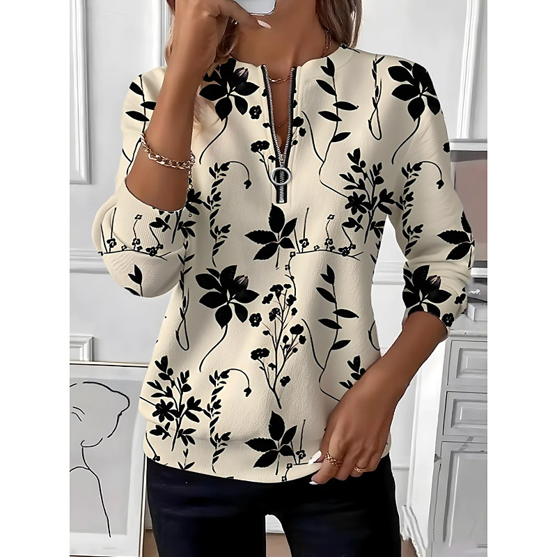 Women's Pullover Sweatshirt Floral Graphic Fashion Casual Long Sleeve Crew Neck Regular Tops Street Dailywear Zipper Print Purple Khaki Fall Winter