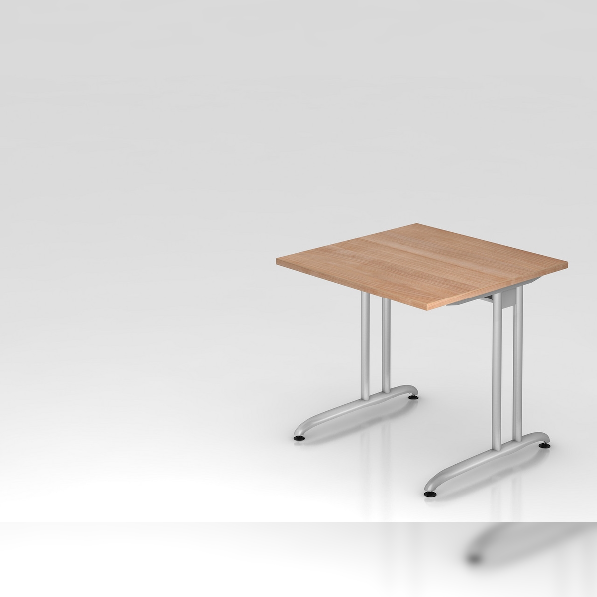 PROREGAL Schreibtisch Markku | Nussbaum | BxT 80x80cm | Arbeitshöhe 72cm | höhenjustierbar 0-10 mm | C-Fuß-Gestell Silber | Bürotisch