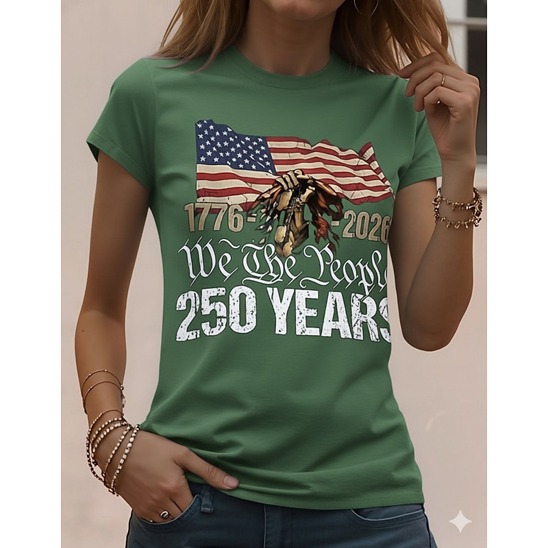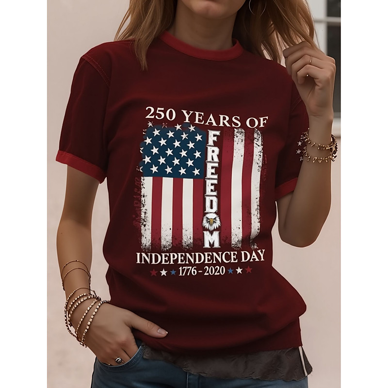 American 250th Women's T Shirt Graphic Independence Day Letter Vintage Stylish Classic Short Sleeve Crew Neck Round Neck Regular Tops Daily Weekend Print Blue Summer Spring Fall