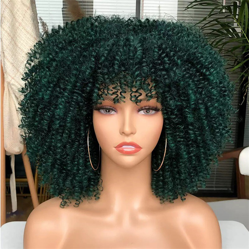 Curly Wig with Bangs for Black Women Short Kinky Curly Wig 14inch Afro Hair Carnival Party Christmas Cosplay Wigs