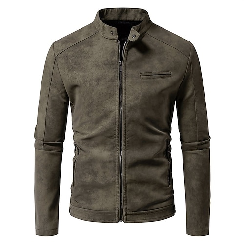 Per uomo Giacca in Ecopelle Giacca di transizione Giacca da Biker Giacca da Moto Vacanza Quotidiano Antivento Caldo Tasca Autunno Inverno Semplice Moda Classico Bavero Regolare Finta pelle Nero