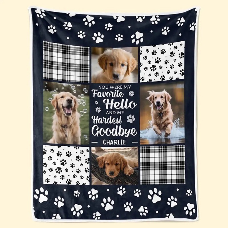 Custom Photo Blanket - Personalized Christmas Memorial Sympathy Gifts For Dogs Cats - You Were My Favorite Hello And My Hardest Goodbye