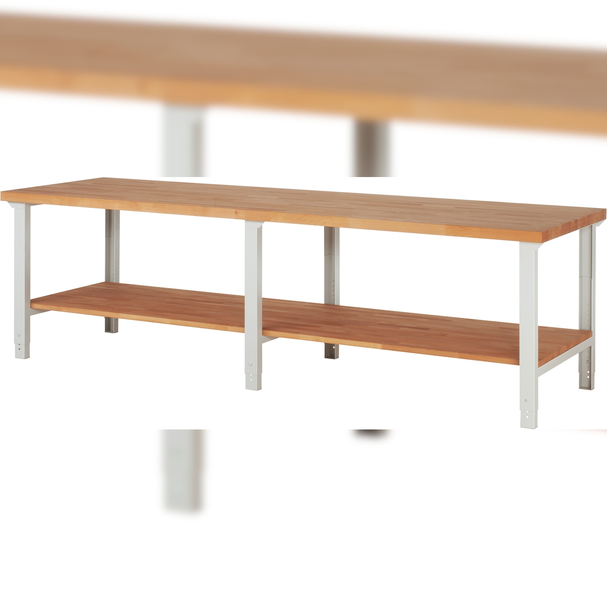 PROREGAL Werkbank Serie 7000 - Modell 7000 | HxBxT 79-114x300x90cm | mit Ablageboden | Lichtgrau | Arbeitstisch Werktisch