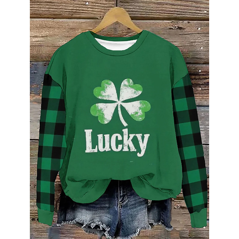 St. Patrick's Day Women's Pullover Sweatshirt Shamrock Casual Long Sleeve Crew Neck Regular Tops Street Dailywear Print Green Fall Winter