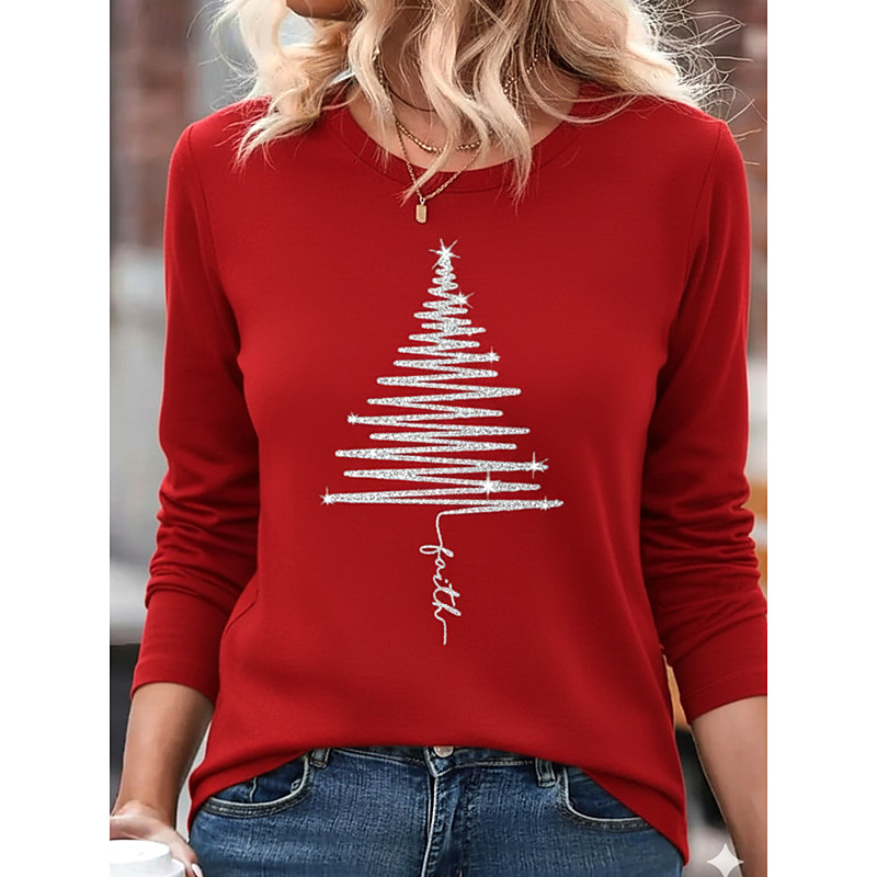 Christmas Women's Christmas Tree T Shirt Graphic Vintage Fashion Stylish Long Sleeve Crew Neck Regular Tops Daily Weekend Print Black Fall Winter
