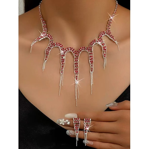set di gioielli da donna con strass verdi, collana e anelli per la festa di Natale, palla eventi serali