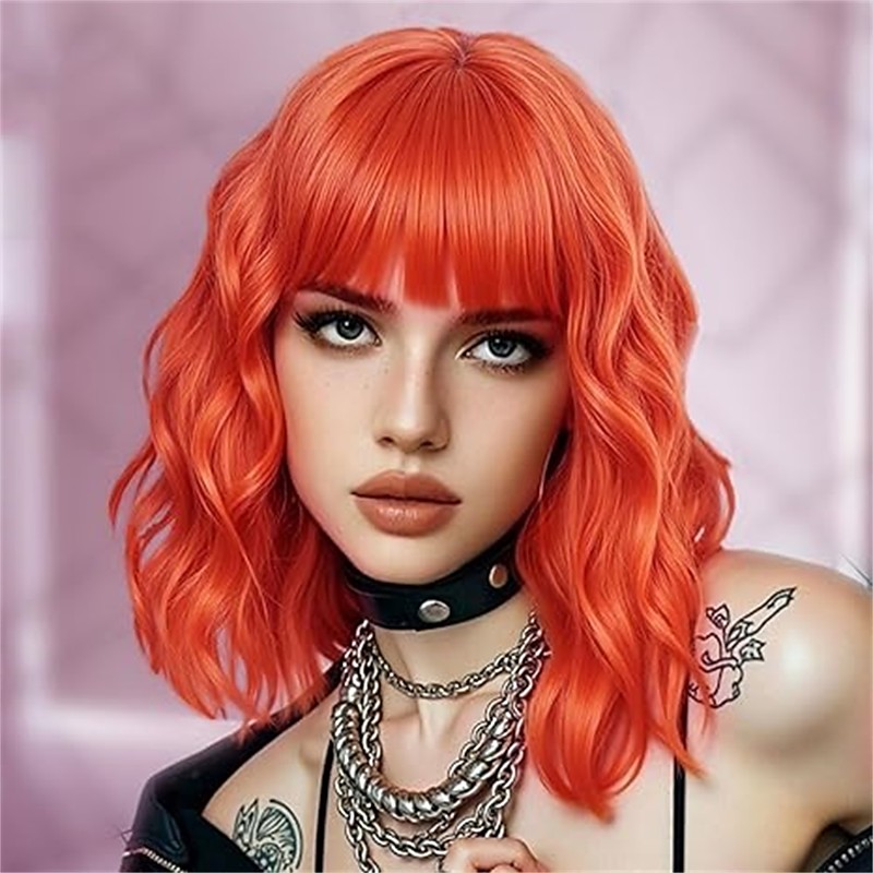 Blonde Wigs for Women Synthetic Wig Deep Wave Neat Bang Wig Medium Length Synthetic Hair for Women Cosplay Party Fashion Blonde Halloween Wigs