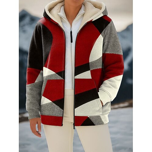 Per donna Cappotto Invernale Caldo Cerniera Tasca Blocco di colore Stampato Moda Casual Geometrico Streetwear Casuale Corto Con Cappuccio Vestibilità regolare Manica Lunga Capispalla Blu Rosso Viola