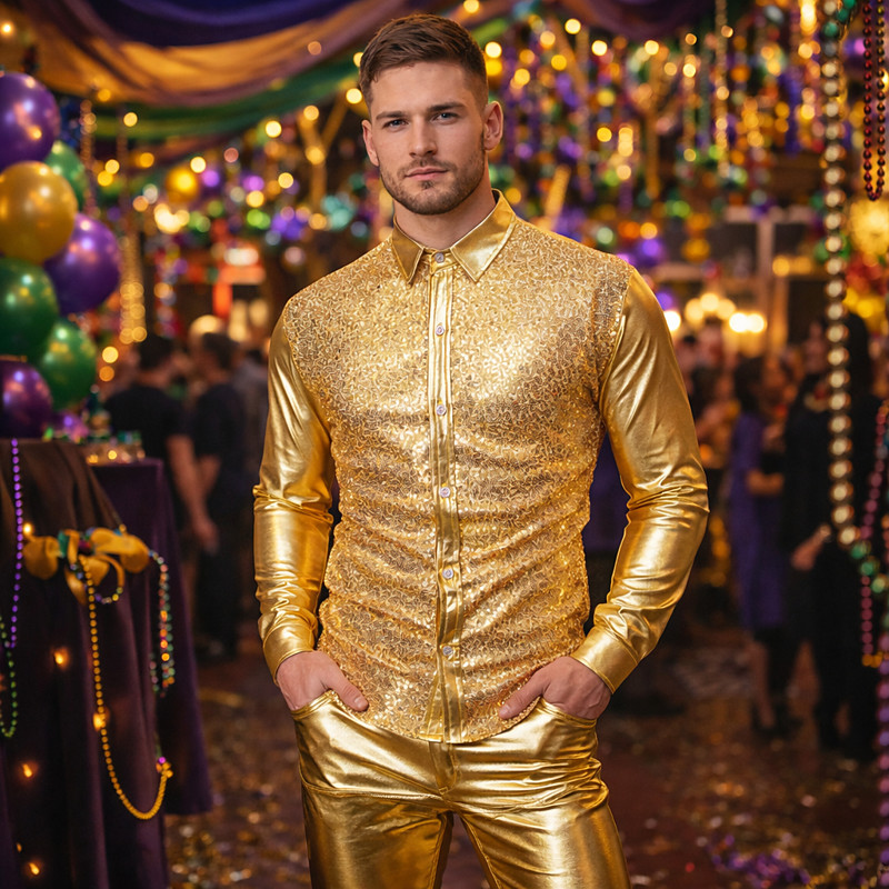 Mardi Gras 2026 Retro Vintage 1980s Shirt Disco Solid Color Turndown Fancy Dress Men's Carnival Costume Carnival Club Performance Pride Parade Adults' Shirt All Seasons