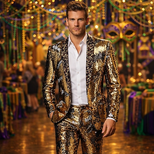Mardi Gras 2026 Retro Vintage 1980er Smoking Anzüge Blazer Disco Pailletten Schmale Passform Kostüm Herren Karnevalskostüm Weihnachten Halloween Karneval Pride Parade Pride-Monat Erwachsene Mantel