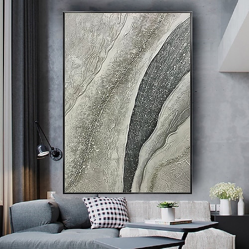 dipinto astratto in foglia d'oro su tela, arte murale moderna di lusso dipinta a mano, opera d'arte grigia e metallica testurizzata per l'arredamento contemporaneo della casa