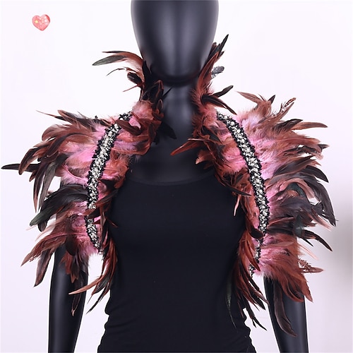 Carnival 2026Rio Carnival Samba Accessories Women's Mardi Gras Feather Cape Shawl, Purple Green Gold Feather Poncho with Jeweled Collar Brazil Festival Performance Costume