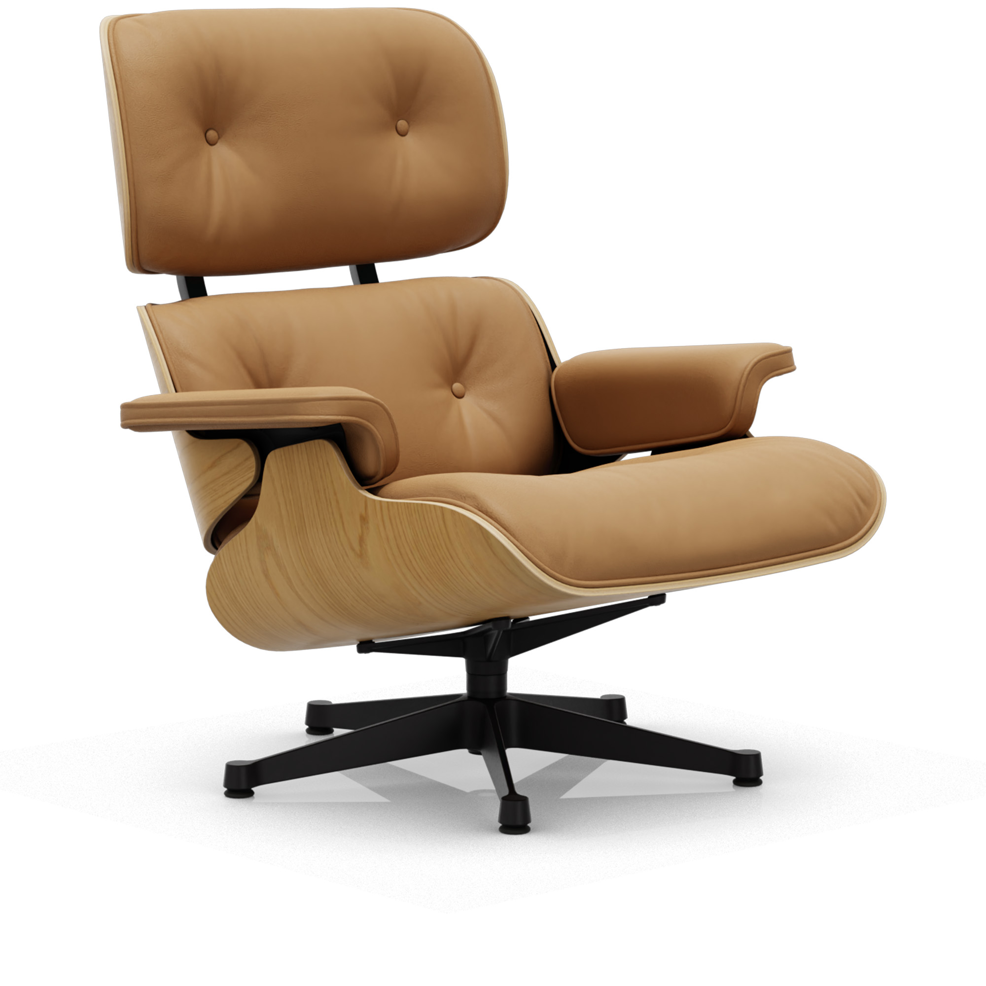 Vitra - Eames Lounge Chair Natural Chestnut Leather Natural Caramel 01 Deep Black - Fåtöljer - Charles & Ray Eames - Läder/Metall/Trä