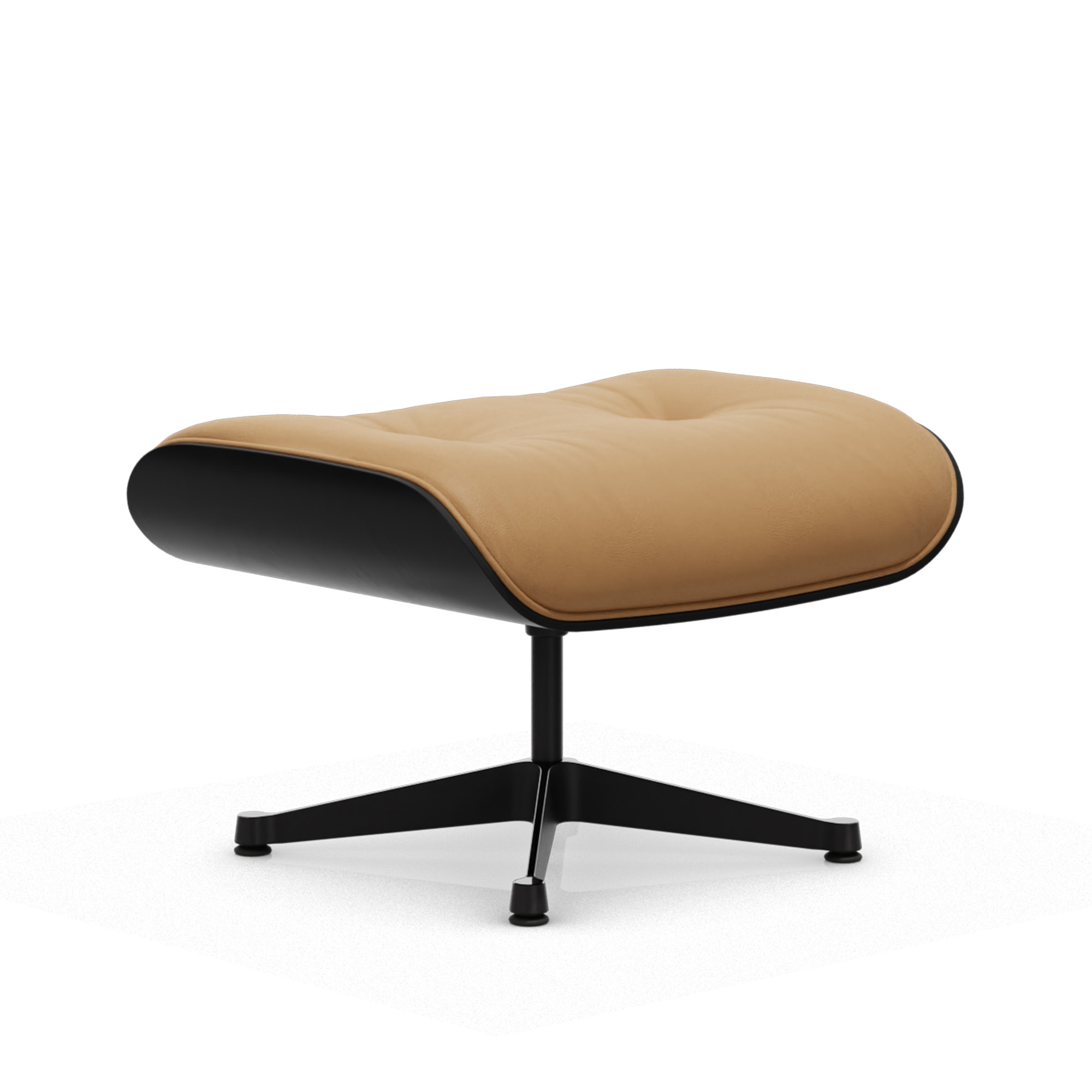 Vitra - Eames Lounge Ottoman Natural Chestnut Leather Natural Dark Sand 78 Deep Black - Fotpallar - Charles & Ray Eames - Läder/Metall/Trä