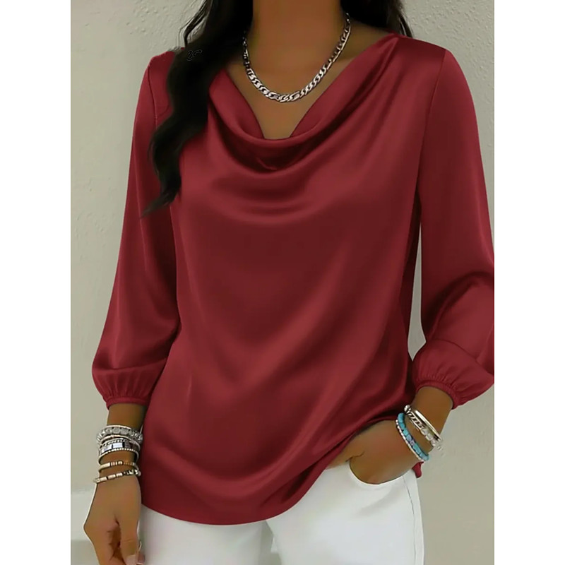 Women's Shirt Solid Color Elegant Vintage Stylish Long Sleeve Cowl Neck Regular Tops Daily Blue Yellow Red Purple Spring Fall Winter Spring, Fall, Winter, Summer