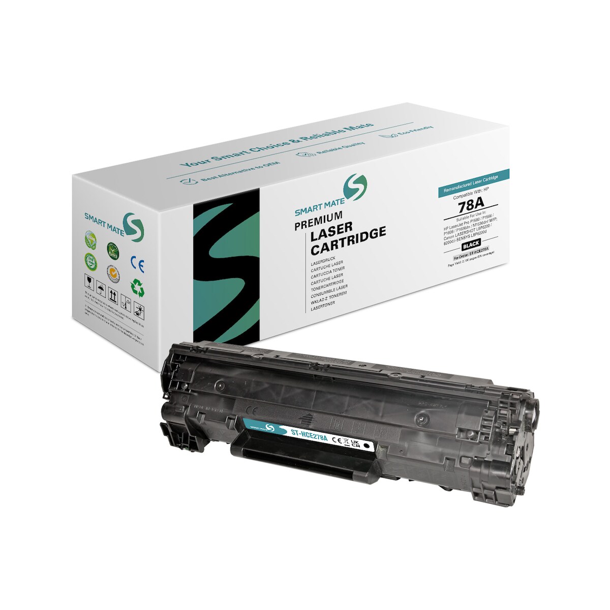 SmartMate wiederaufbereiteter Laser Toner Patrone für HP CE278A (78A) Schwarz