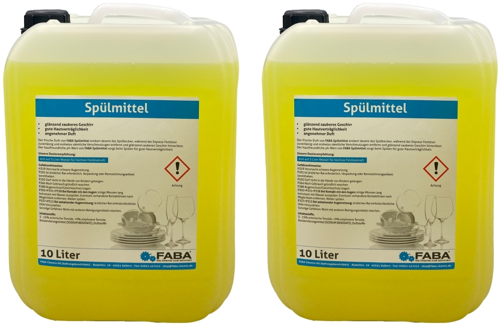 FABA Chemie Geschirrspülmittel Konzentrat Spülmittel 2 x 10 Liter