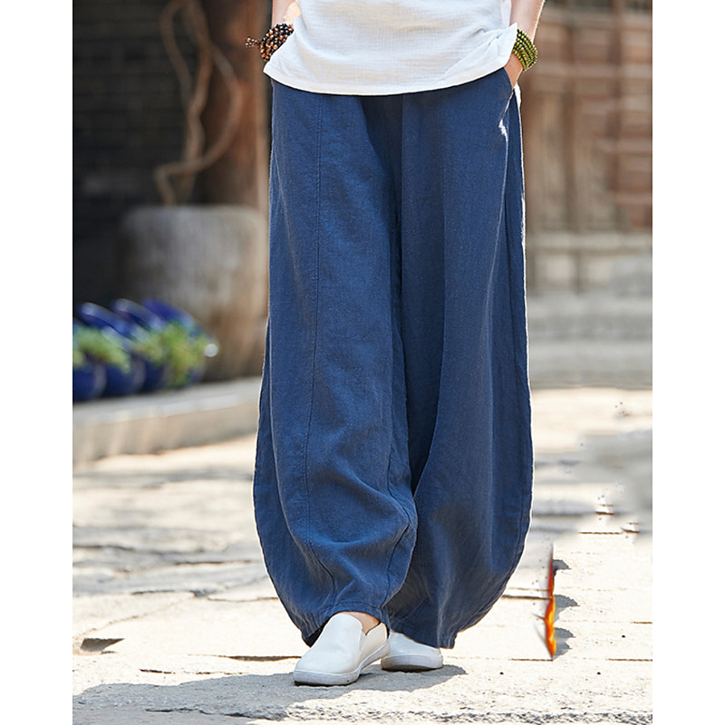 Men's Linen Pants Trousers Patchwork Drawstring Harem Solid Color Breathable Quick Dry Street Casual Athleisure Loose Fit Black Gray Micro-elastic / Winter / Cropped Pants / Moisture Wicking