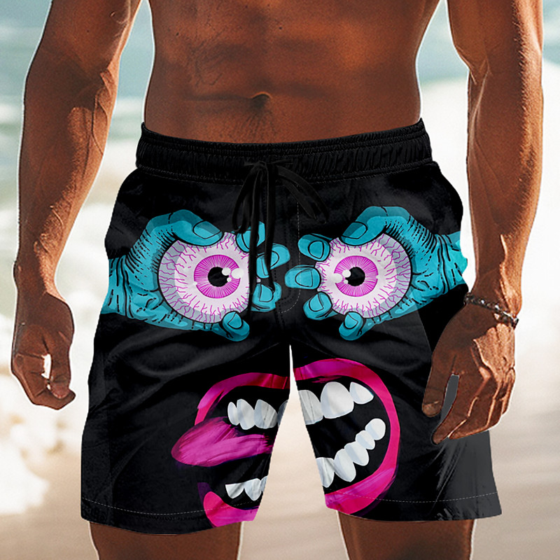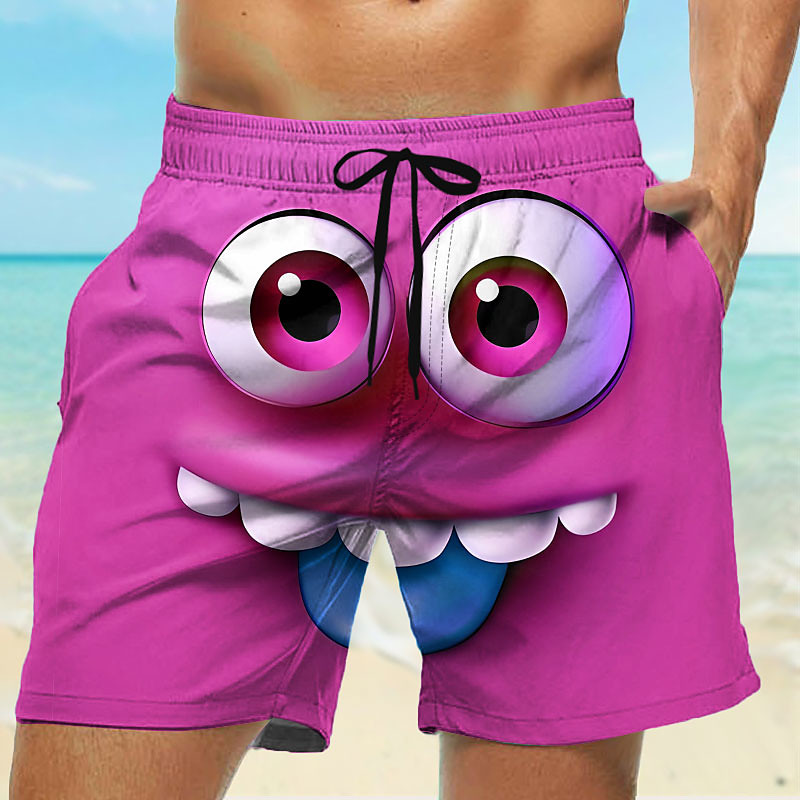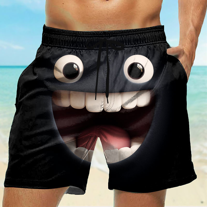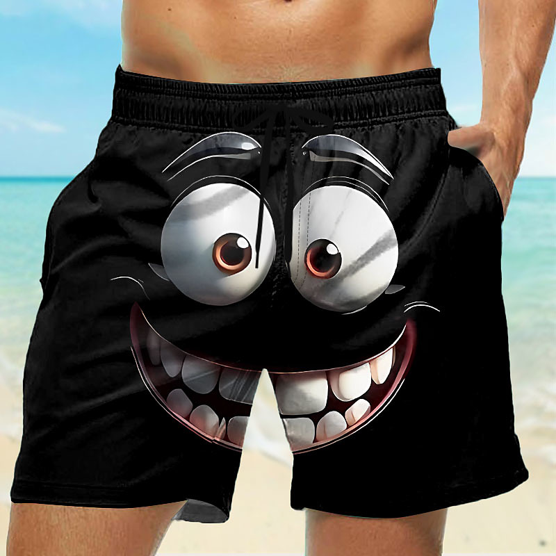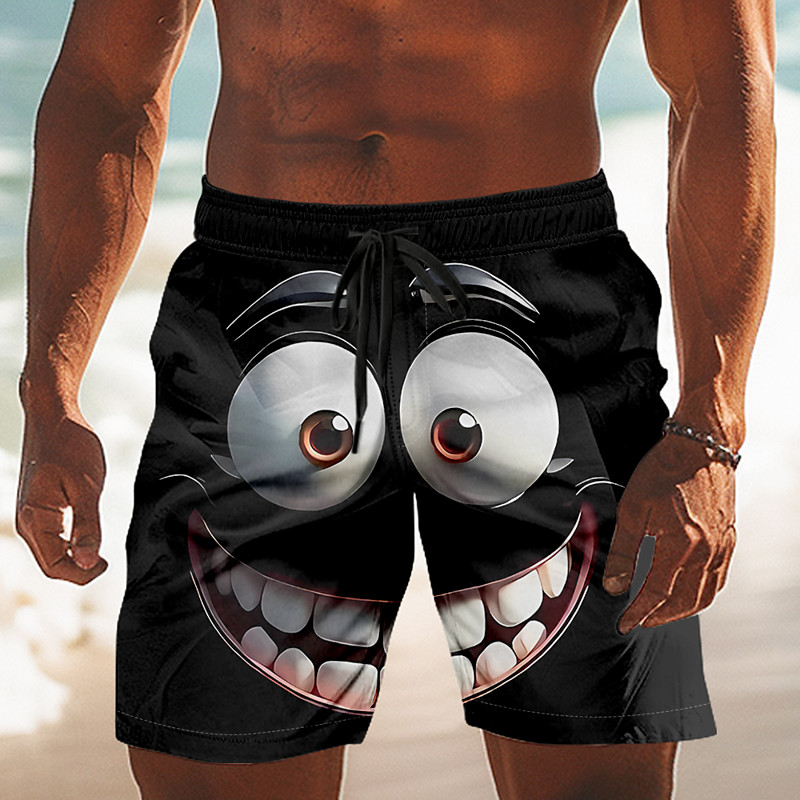 Men's 3D Cartoon Smile Face Big Eyes Swim Trunks Swim Shorts Board Shorts Mid Waist Funny Outdoor Vacation Dailywear Side Pockets Mesh Lining Elastic Drawstring Waist Designer Clothing Apparel