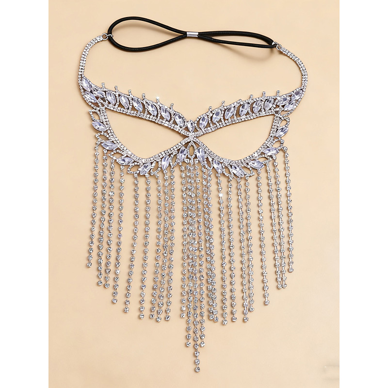 Women's Crystal Rhinestone Fringe Mask Headpiece - Sparkly Face Chain Headdress for Gatsby Party, Stage Performance and Evening Events
