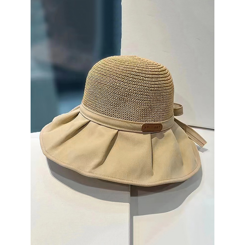 Women's Wide Brim Straw Sun Hat - Foldable UV Protection Soft Brim Beach Hat with Bow Decoration, Elegant Summer Hat for Vacation, Outdoor and Travel