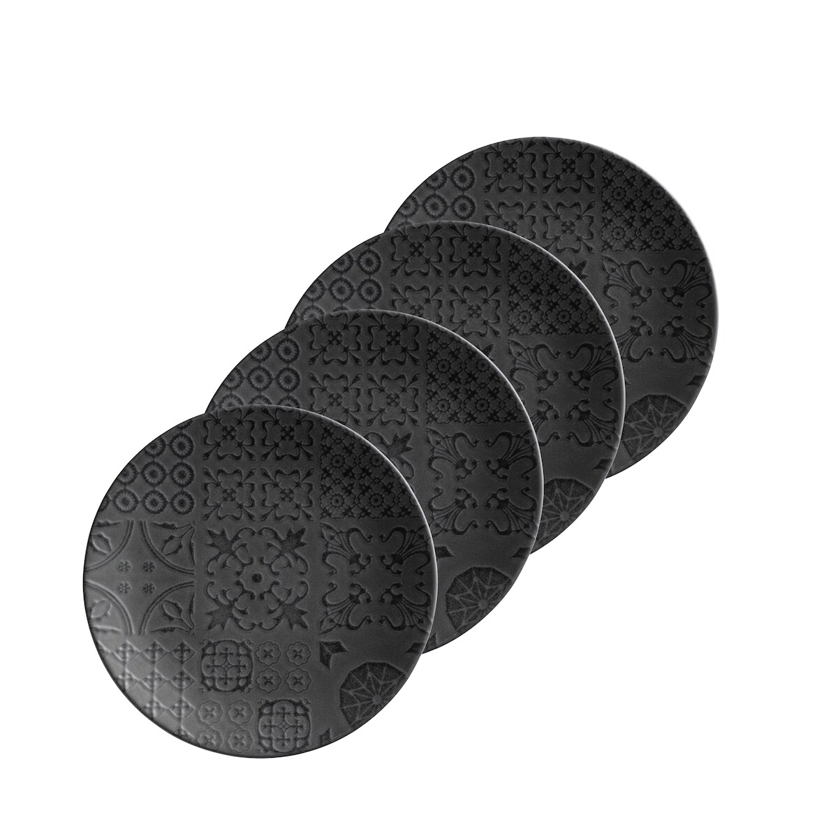 MÄSER Dessertteller 21 cm 4er Set, Trad. Tiles Schwarz, 581192