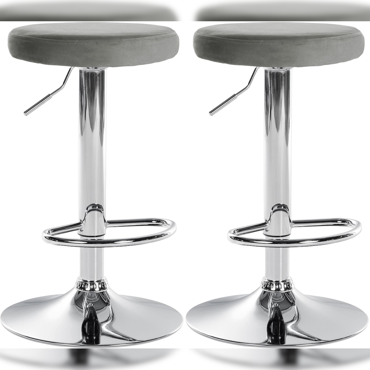 DELUKE 2er Set Barhocker KAZON - Samt Grau 38.5x38.5x60 cm Silber | Barstuhl Höhenverstellbar Drehbar Tresenhocker Tresenstuhl Kneipenhocker Kneipenstuhl
