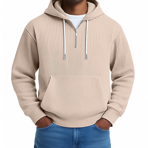 Per uomo Felpa con cappuccio Velluto a coste Maglione Felpa con cappuccio e zip corta Aalbicocca Bianco Viola Verde Grigio chiaro Con Cappuccio Semplice Tasca a marsupio Testurizzato Casuale