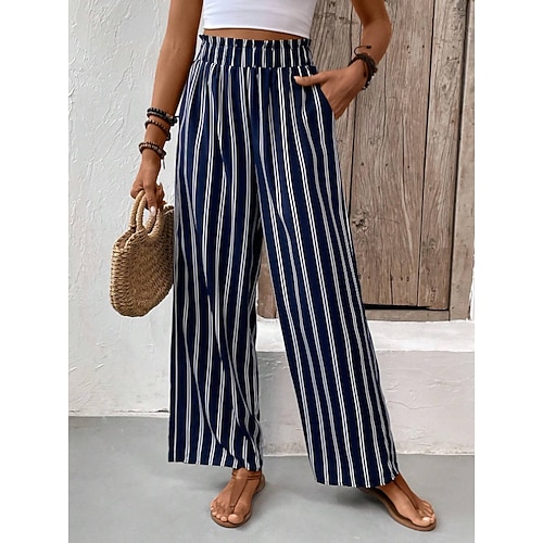 Damen Breites Bein Hosen Hose Casual Lang Gestreift Weite Hosen Print Atmungsaktivität Komfortabel Mikro-elastisch Büro / Geschäftlich Marinenblau Frühling Sommer Regular Fit
