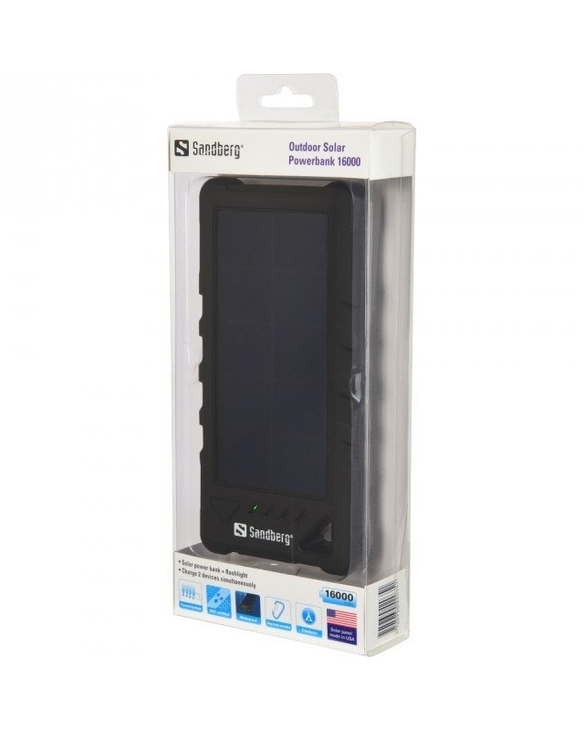 SANDBERG A/S Sandberg Outdoor Solar Powerbank 16000 Li-Ion mAh 3.4 A 2 Ausgabeanschlussstellen USB nur Strom auf Kabel: Micro-USB