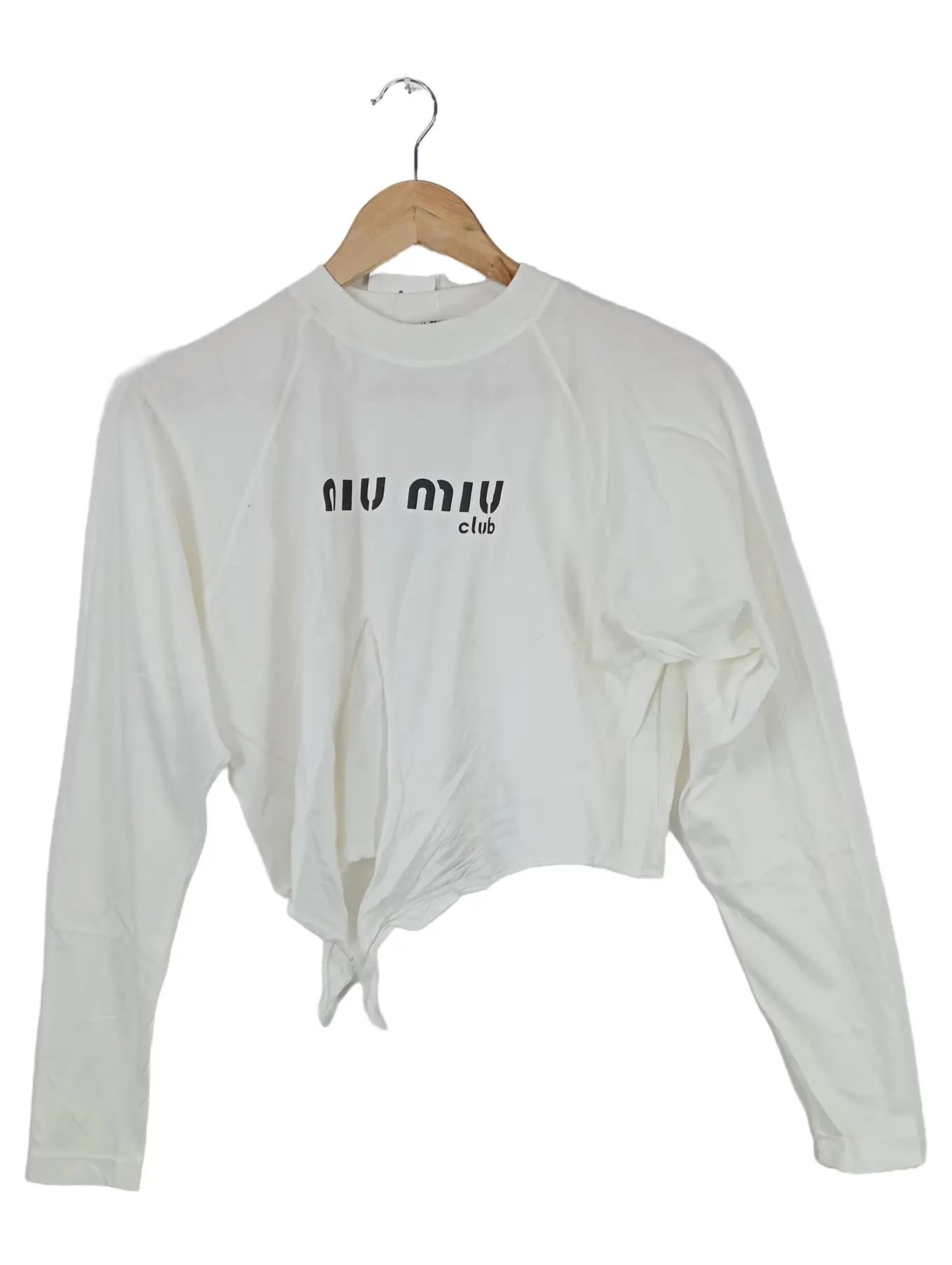 MIU MIU Damen Crop-Top XS Weiß Baumwolle Logo-Print