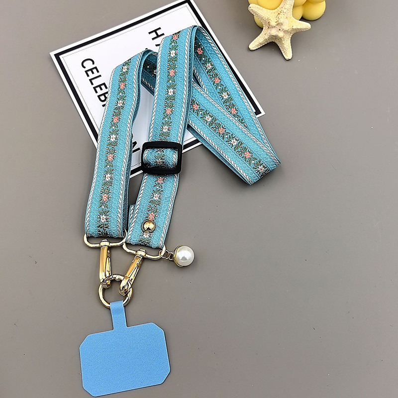 Vintage printed style jacquard embroidery mobile phone lanyard crossbody long style outdoor travel shopping neck hanging sturdy and durable trendy