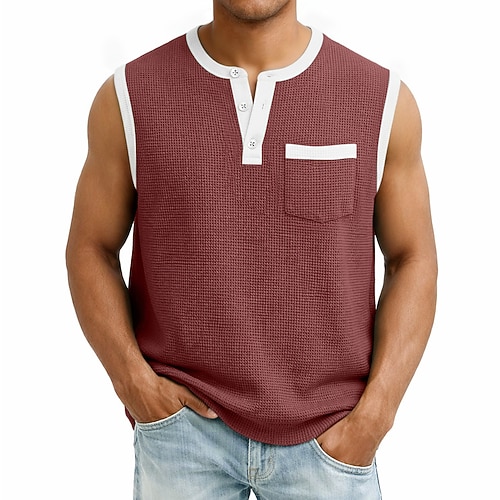 Herren Waffel-Tanktop Tank Top Weste Unterhemd Ärmellos Henley Sommer Einfach Mode Klassisch Lässig Lässig Täglich Heim Hellgrün Rote Dunkelblau Top T-Shirt für Herren