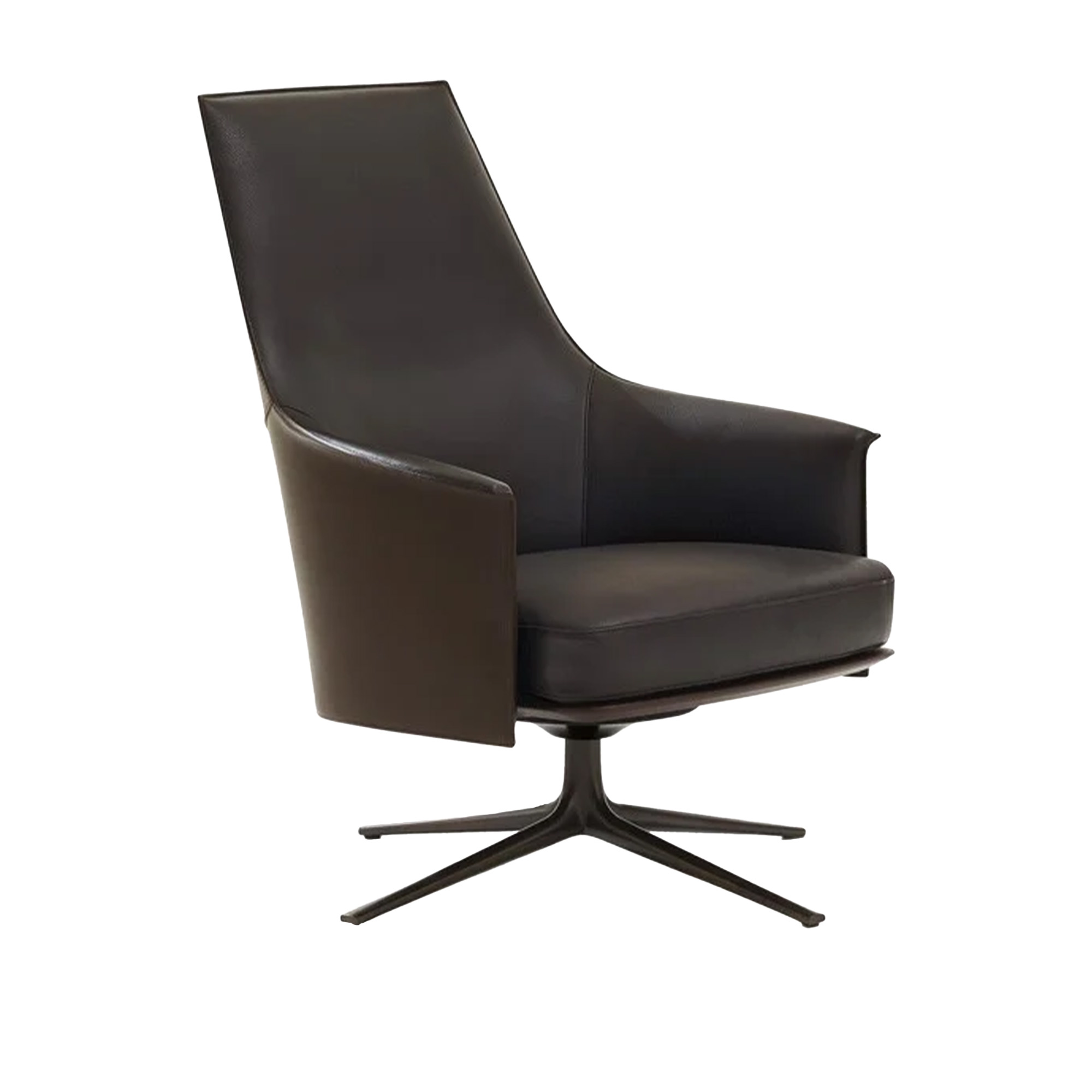 Poliform - Stanford Lounge fåtölj, Glossy Nickel Swivel Base, Outside 19 Caffe, Inside 12 Moka - Fåtöljer - Jean-Marie Massaud - Brun - Läder/Metall
